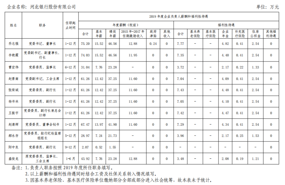 河北省省属国有企业负责人2019年度薪酬信息披露表