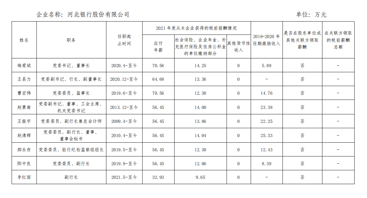 河北省省属国有企业负责人2021年度薪酬信息披露表