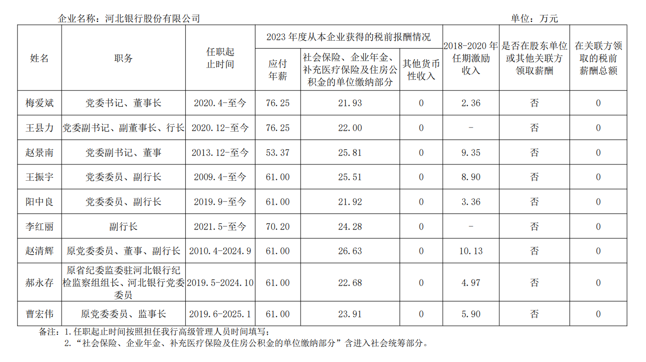 河北省省属国有企业负责人2023年度薪酬信息披露表