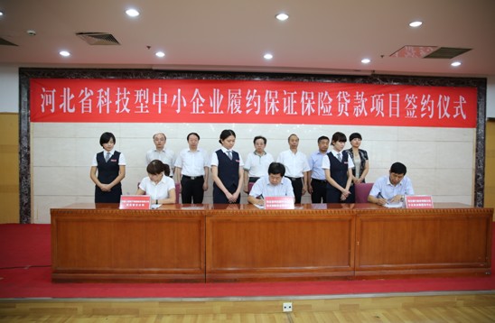 为降低科技型中小企业融资成本,缓解科技型中小企业融资难题,9月3日,河北银行与省科技厅、中国人保财险河北省分公司联合推出了科技型中小企业履约保证保险贷款,并签署了《河北省科技型中小企业履约保证保险贷款合作协议》。
