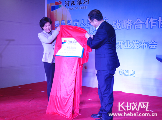 省委常委、秦皇岛市委书记田向利与河北银行董事长乔志强为河北银行秦皇岛分行开业揭幕