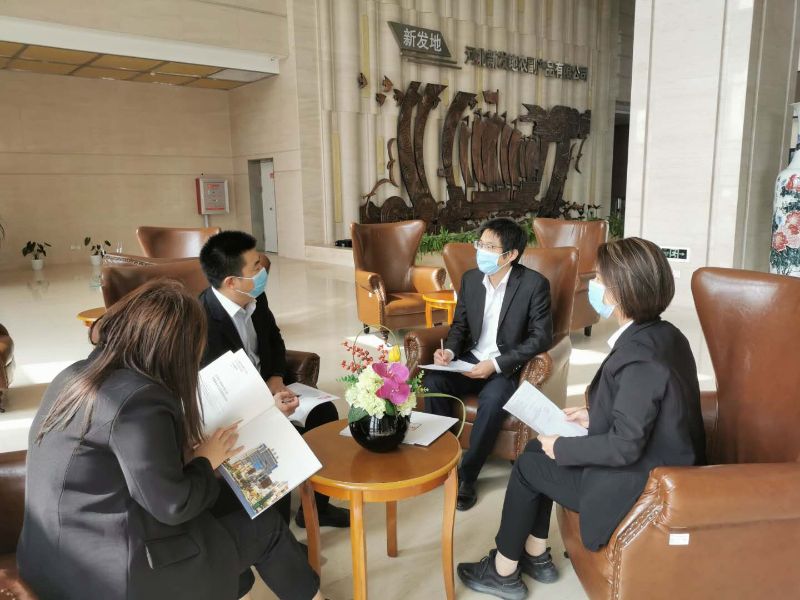河北银行保定分行工作人员与河北新发地融资负责人洽谈。