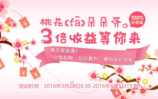 【活动形式】:以问卷调查方式开展,客户参与答卷即可获得收益翻倍权,购买南方现金通E,获取多倍收益奖励;推荐他人参与活动,还可享受奖励收益。活动结束后5个工作日,以南方现金通E基金份额的形式兑付。