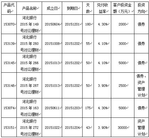 2015年12月1日至2015年12月4日共有六款对公理财到期。通过资金运作,该六款理财产品均已顺利实现理财产品说明书中载明的预期年化收益率。现将相关信息公告如下: