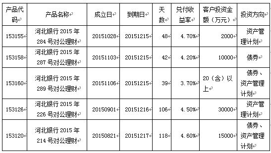 2015年12月15日至2015年12月17日共有五款对公理财到期。通过资金运作,该五款理财产品均已顺利实现理财产品说明书中载明的预期年化收益率。现将相关信息公告如下: