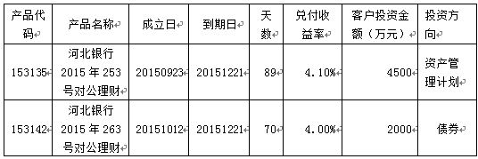 2015年12月21日共有两款对公理财到期。通过资金运作,该两款理财产品已顺利实现理财产在品说明书中载明的预期年化收益率。现将相关信息公告如下: