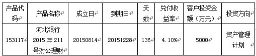河北银行对公理财产品到期公告