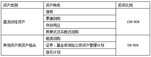 本理财计划资金由河北银行投资于以下符合监管要求的各项资产:一是高流动性金融工具,包括但不限于存放同业、银行间市场质押式回购、票据回购、较高信用等级债券;二是其他资产或资产组合,包括但不限于租赁回购、证券、基金或保险公司资产管理计划、信托计划等。本产品投资的资产种类和比例如下,可在[-10%,+10%]的区间内浮动: