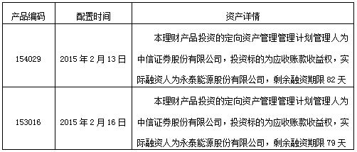 我行2015年2月13日至2015年2月16日为以下理财产品配置非标资产,详情如下: