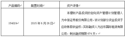 我行2015年6月26日为以下理财产品配置非标资产,详情如下: