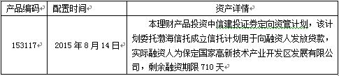 我行于2015年8月10日至2015年8月14日为以下理财产品配置非标资产,详情如下: