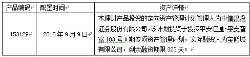 我行于2015年9月9日为以下理财产品配置非标资产,详情如下:
