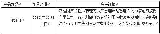 我行于2015年10月13日为以下理财产品配置非标资产,详情如下:
