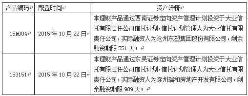 我行于2015年10月22日为以下理财产品配置非标资产,详情如下: