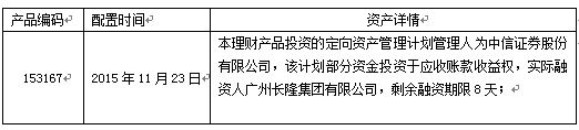 我行于2015年11月23日为以下理财产品配置非标资产,详情如下: