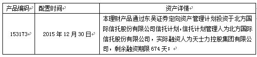 我行于2015年12月30日为以下理财产品配置非标资产,详情如下: