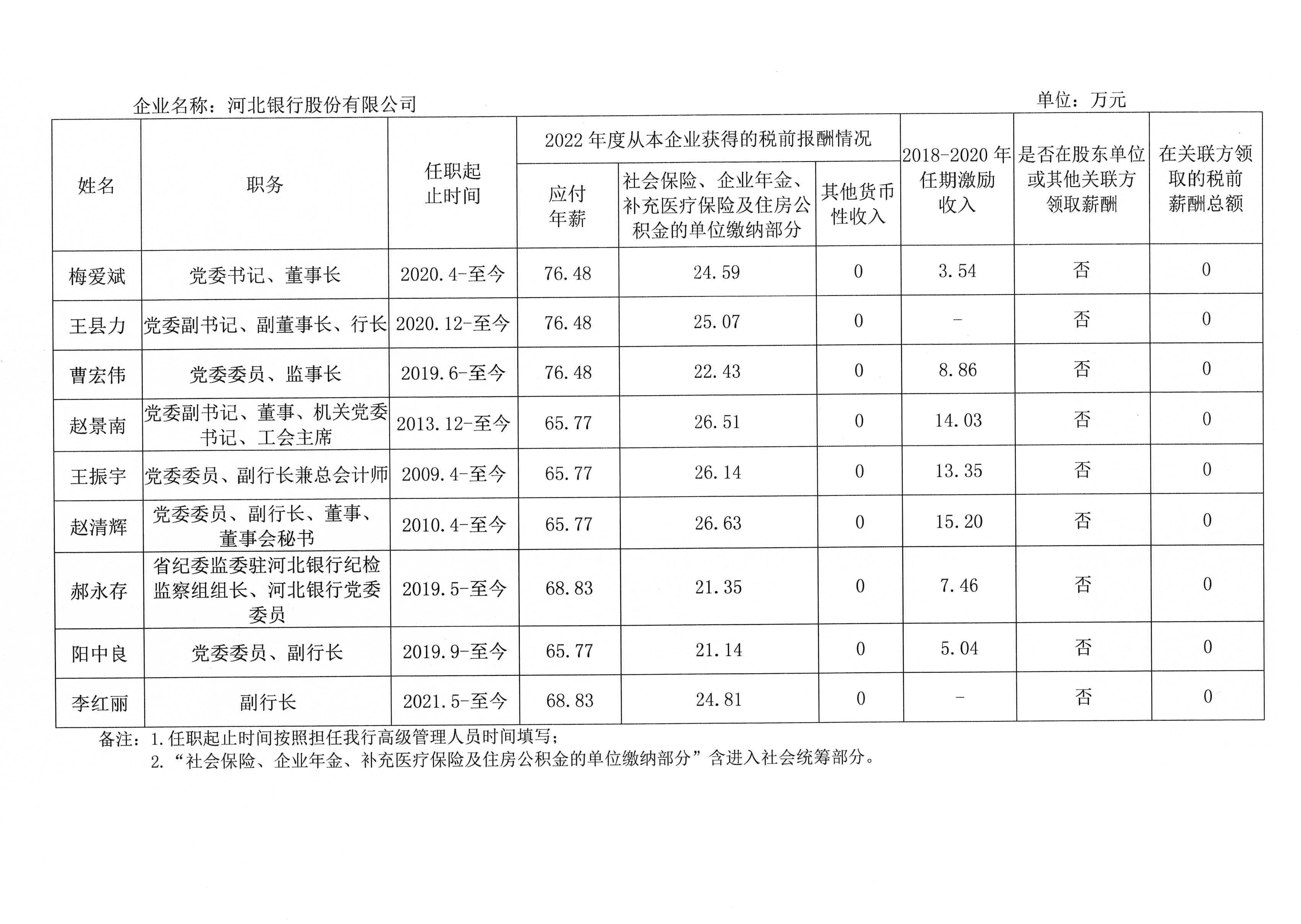 河北省省属国有企业负责人2022年度薪酬信息披露表