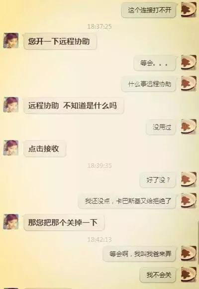 小河温馨提示:千万不要让陌生人远程操作你的电脑。因为一旦启动远程操控,任何人都可以在异地通过网络控制你的电脑。另外,淘宝交易需要加QQ沟通的,往往是诈骗。