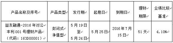 我行正式发售20周年行庆专属“益友融通-2016年对公丰利001号理财产品”