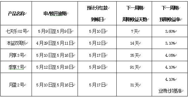 备注:1.开放式产品在申/赎开放期内,客户如未提交赎回申请,本金自动转入下一周期。