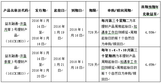 我行正式发售“益友融通-开盈月享3号、季享3号理财产品”公告